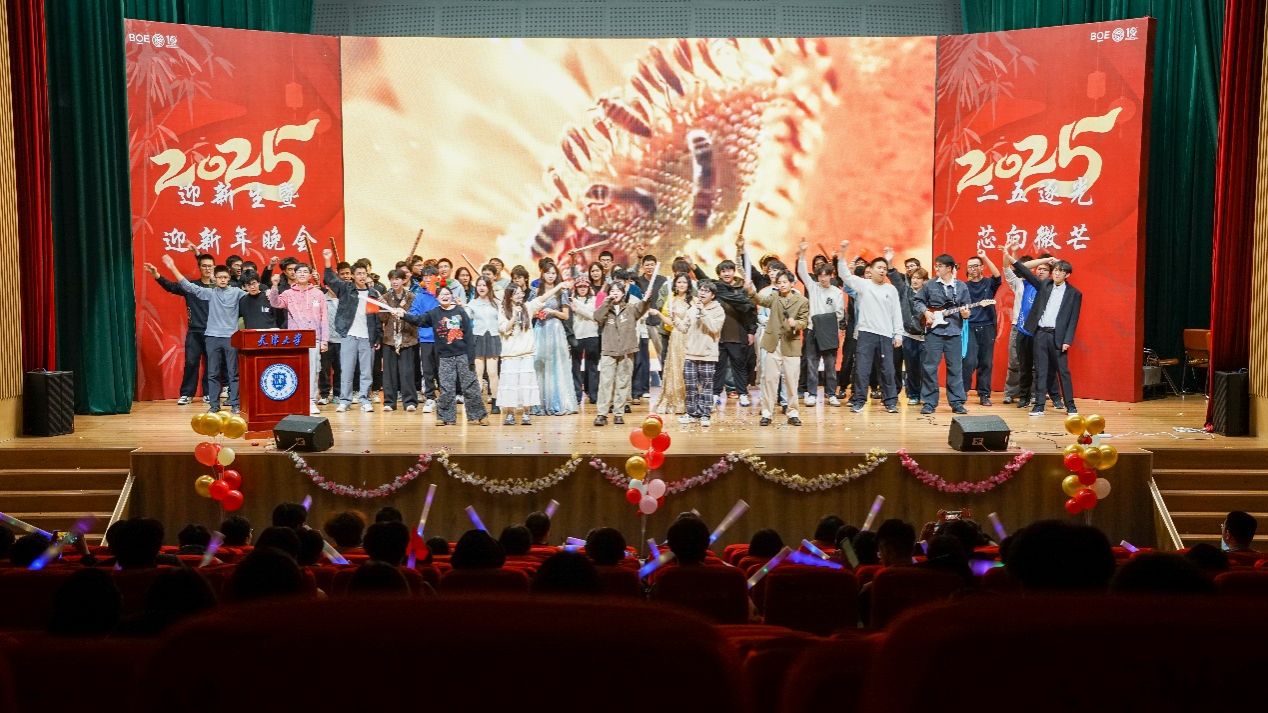 2025年12月27日晚,性视频 “二五逐光,芯向微芒”2025年迎新生暨迎新年晚会于茅以升报告厅举行。京东方科技集团股份有限公司全球校园招聘部华北区招聘负责人张旭、全球校园招聘部校企关系建设负责人耿康宁,性视频 党委副书记韩旭、团委书记王玥、本科生新生辅导员尹明、专职辅导员刘雨,思政人才李梦笛、郭颖异出席晚会。