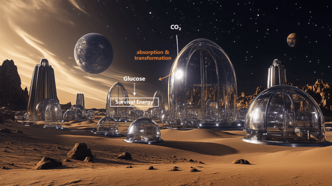 项目涉及领域包括电子工程,机械工程,生物医学工程下的多专业多领域,团队向评委展示了此项目涉及的六大类创新点:多模态光合系统,三段共聚物和可极化薄膜,多孔PDMS气液交互,多级微纳传感,3D多路复用集成,和希尔伯特扩展;以及具体的20多条理论创新和设计创新:包括微纳制造,微纳传感器,生物化学,植物学,薄膜技术,蛋白质重构,异形PDMS,异质PDMS重构,聚合物合成,可极化薄膜,人造细胞,生物催化,化学催化,光能转化,ATP控制,壳聚糖3D打印,异质材料的流体力学Navier-Stokes公式,FPGA实现3D多路复用控制,希尔伯特微流体等。这项技术的应用场景广泛,首先可以用于未来“清洁能源建筑”,构建从“单体建筑➙群体建筑➙社区➙城市➙国家”的清洁能源体系;其次可以用于高CO2排放的工业,在第一道门槛降低碳排放;第三可以用于食物短缺地区或不适宜植物生长地区,由于采用无细胞形式,可以在这类地区取代传统农作物,稳定生产葡萄糖或淀粉;最后作为未来技术,可以放眼未来火星移民这类高CO2缺水地区殖民计划,对标美国国家航天局NASA旗下的火星计划。总体上团队项目面向清洁能源和可持续发展战略,与联合国2030可持续发展目标和中国2060碳中和目标契合。